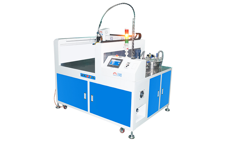 3、涂膠部分易于操作。您只需要將AB膠倒入相應的料桶中,然后在PLC觸摸屏中設置膠填充程序即可。按下一個按鈕即可啟動,機器可以自動填充膠水。機器自動按照產品填充量分配,有效節省膠水;
